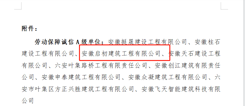關于對六安市葉集區建筑公司榮獲“六安市葉集區勞動保障誠信單位”予以表彰的通報